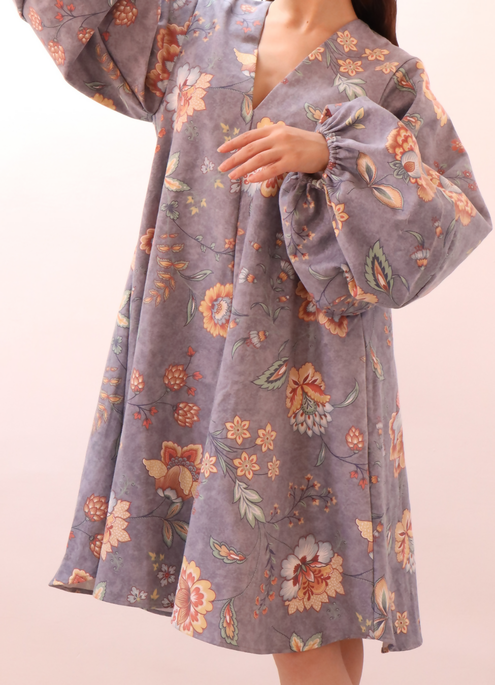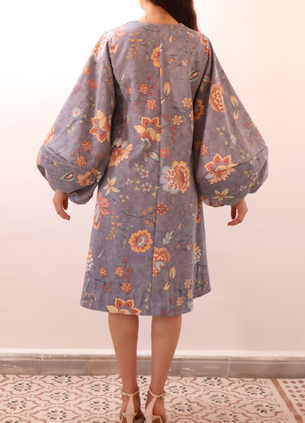 With its flattering A-line silhouette and midi length, the Lili dress stands out with its deep V-neckline and long puff sleeves, featuring a delicate sleeve panel detail and elasticated cuffs. Thoughtfully designed, it includes discreet in-seam pockets—perfect for keeping your essentials close at hand. Whether sewn in structured or fluid fabrics, the Lili dress is both easy to make and highly versatile. From special occasions to casual strolls, it will accompany you in style, whatever the moment.