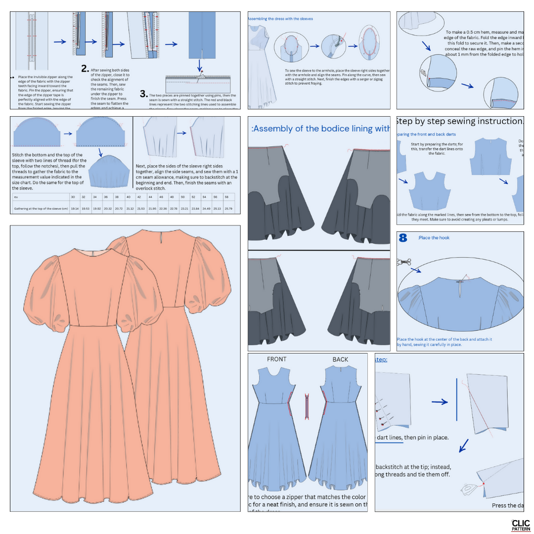 Follow our step-by-step tutorial, complete with clear technical drawings, to guide you through your sewing project.